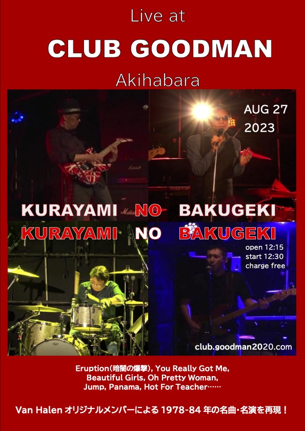 1 Red Hot Chili Peppers コピーバンド 2 湖上の紫炎 (plays Deep Purple) 3 暗闇の爆撃 (plays Van Halen)