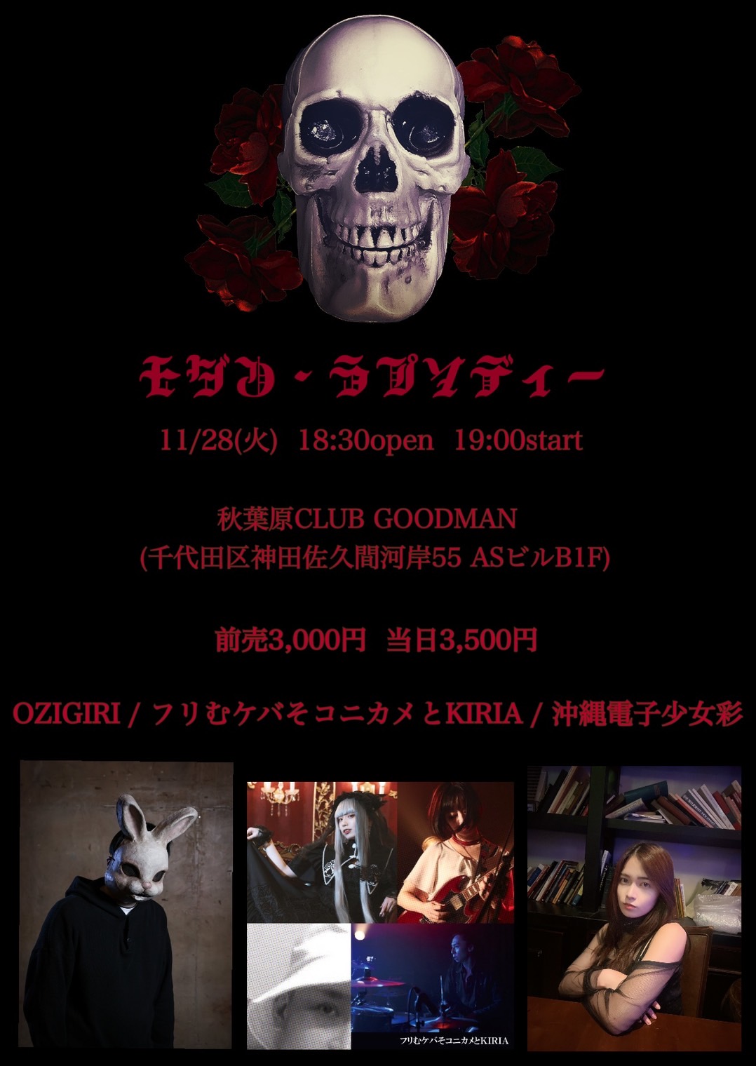 11/28(火)『モダン・ラプソディー』 18:30open 19:00start 会場:秋葉原CLUB GOODMAN 料金:前売3,000円 当日:3,500円