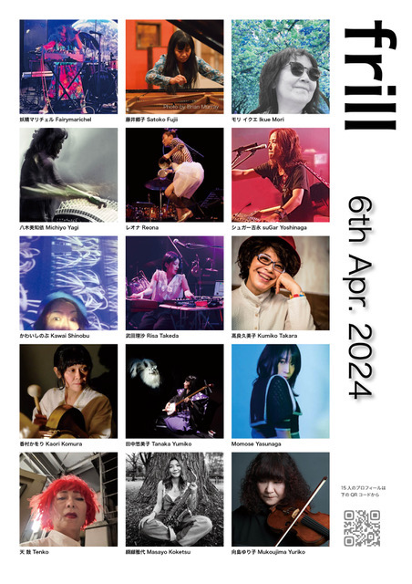 4月6日(土)16:30オープン/ロック、ジャズ、クラシック、現代音楽、伝統音楽…ジャンルを超えボーダーレスに世界で挑戦を続ける15人が編み出す即興ニューウェーブ。NYから来日のモリイクエと藤井郷子がどんな刺激でスパークさせるかも大いに楽しみ!