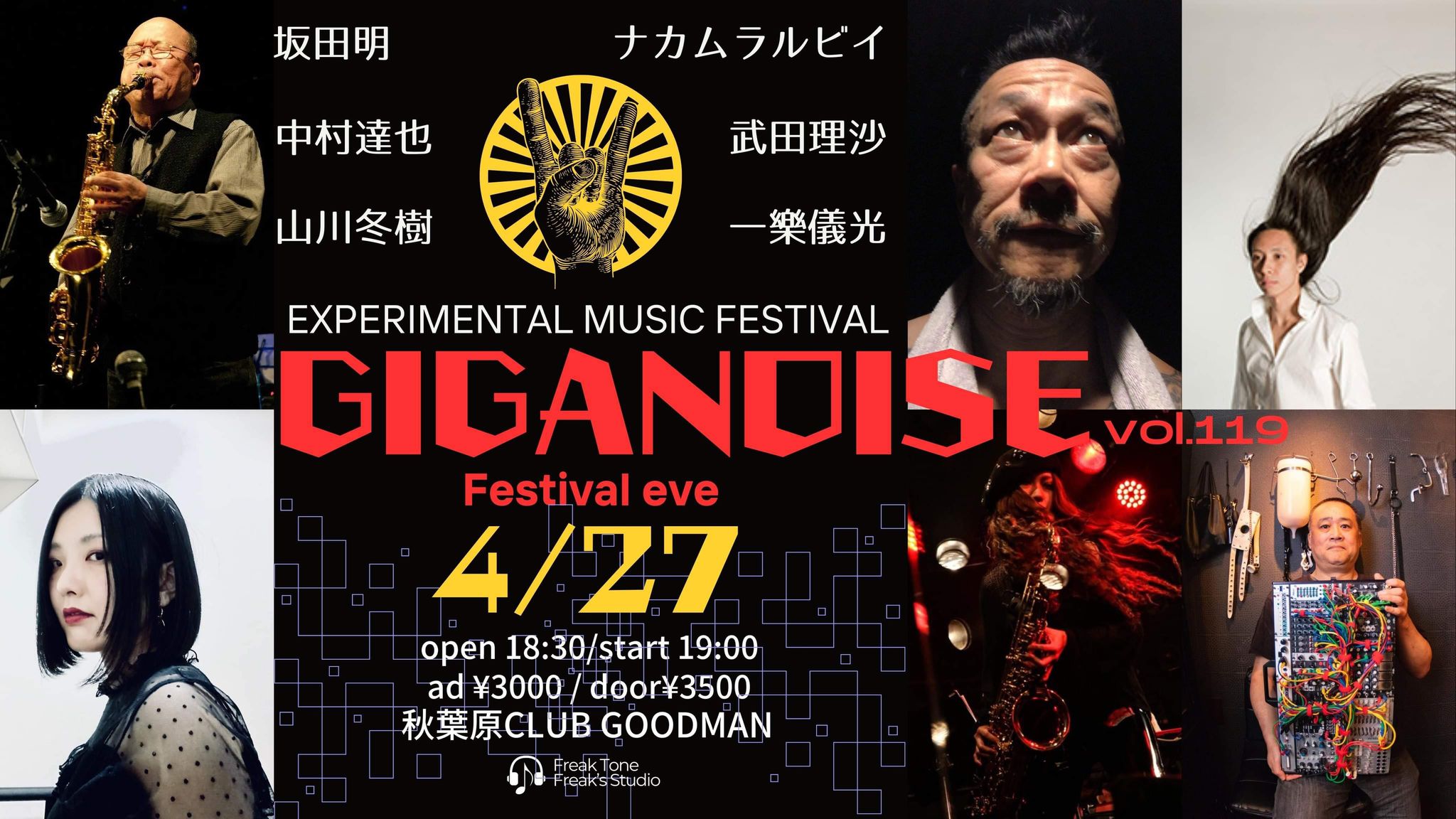 『GIGANOISE 前夜祭』 日時:4/27(土) open 18:30 start 19:00 adv¥3,000 doo¥3,500(+1drink order) 会場:秋葉原CLUB GOODMAN