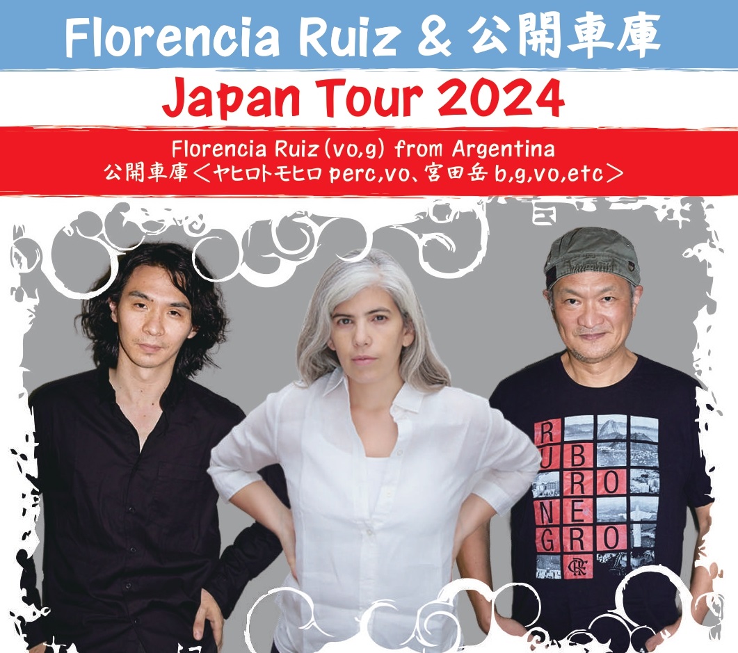 ロックをベースにした、シンプルで深遠なサウンドの新しいアルゼンチン音楽を摩訶不思議な世界観で産み続けているフロレンシア・ルイスをブエノスアイレスから招き、2022年12月満を持して結成したDuo「公開車庫」サポートのもと日本ツアーを展開。ツアーのスタートには、7/7に還暦を迎え益々進化し続ける超絶ギタリスト、鬼怒無月gを迎える。ダイナミズムな独特のフロレンシアの歌声と「空に油」でもお馴染みの3名の演奏をお楽しみ下さい。