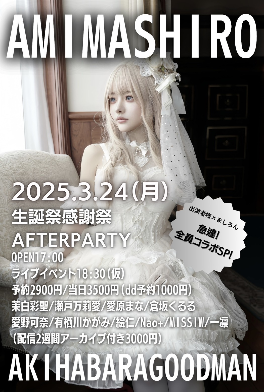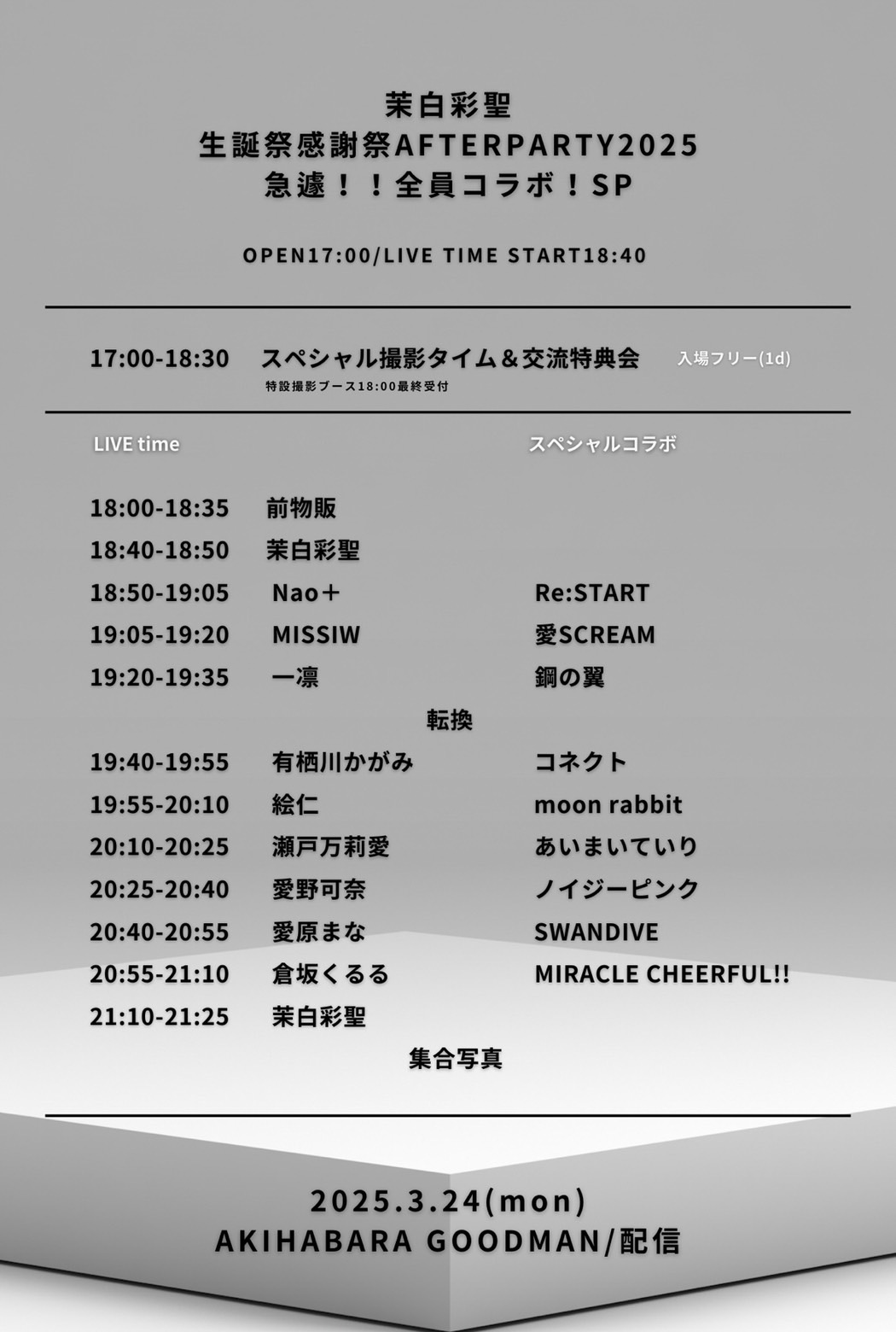 出演者 茉白彩聖 瀬戸万莉愛 愛原まな 倉坂くるる 愛野可奈 有栖川かがみ 絵仁 Nao+ MISSIW 一凛 OPEN 17:00 / START 18:40 予約2,900円/当日3,500円(dd予約1,000円)+ドリンク代¥600 配信3,000円