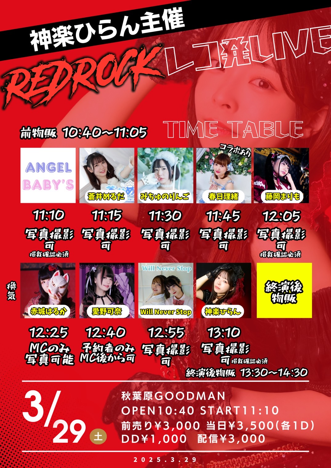 出演者 神楽ひらん 愛野可奈 赤城はるか ANGEL BABY'S 蒼井めるだ Will Never Stop 春日理緒 藤岡まりも みちゅのりんご OPEN 10:40 / START 11:10 前売¥3,000 当日¥3,500(各1D)配信¥3,000