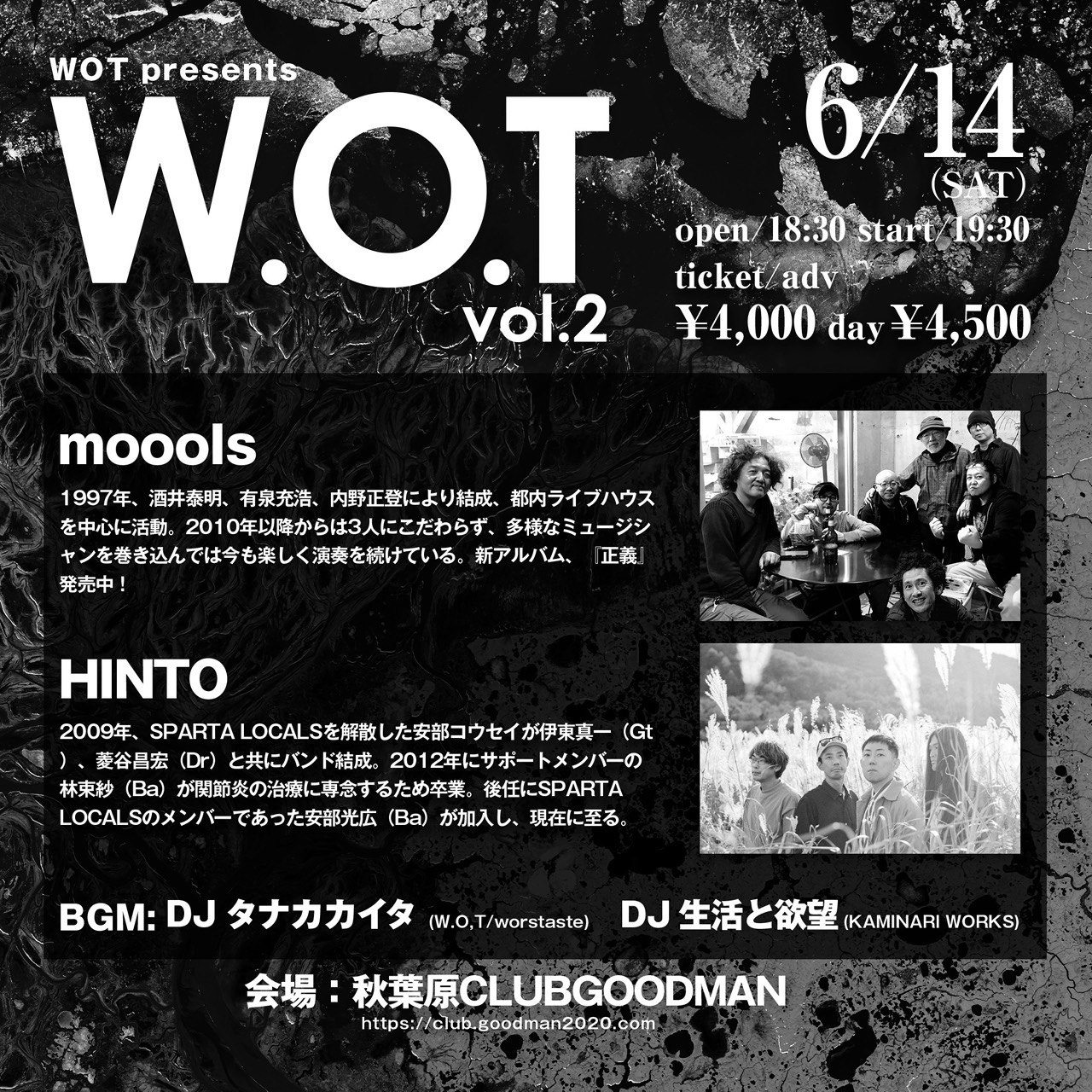 前売¥4,000 当日¥4,500(+1drink order)/早¥4,500(+1drink order))