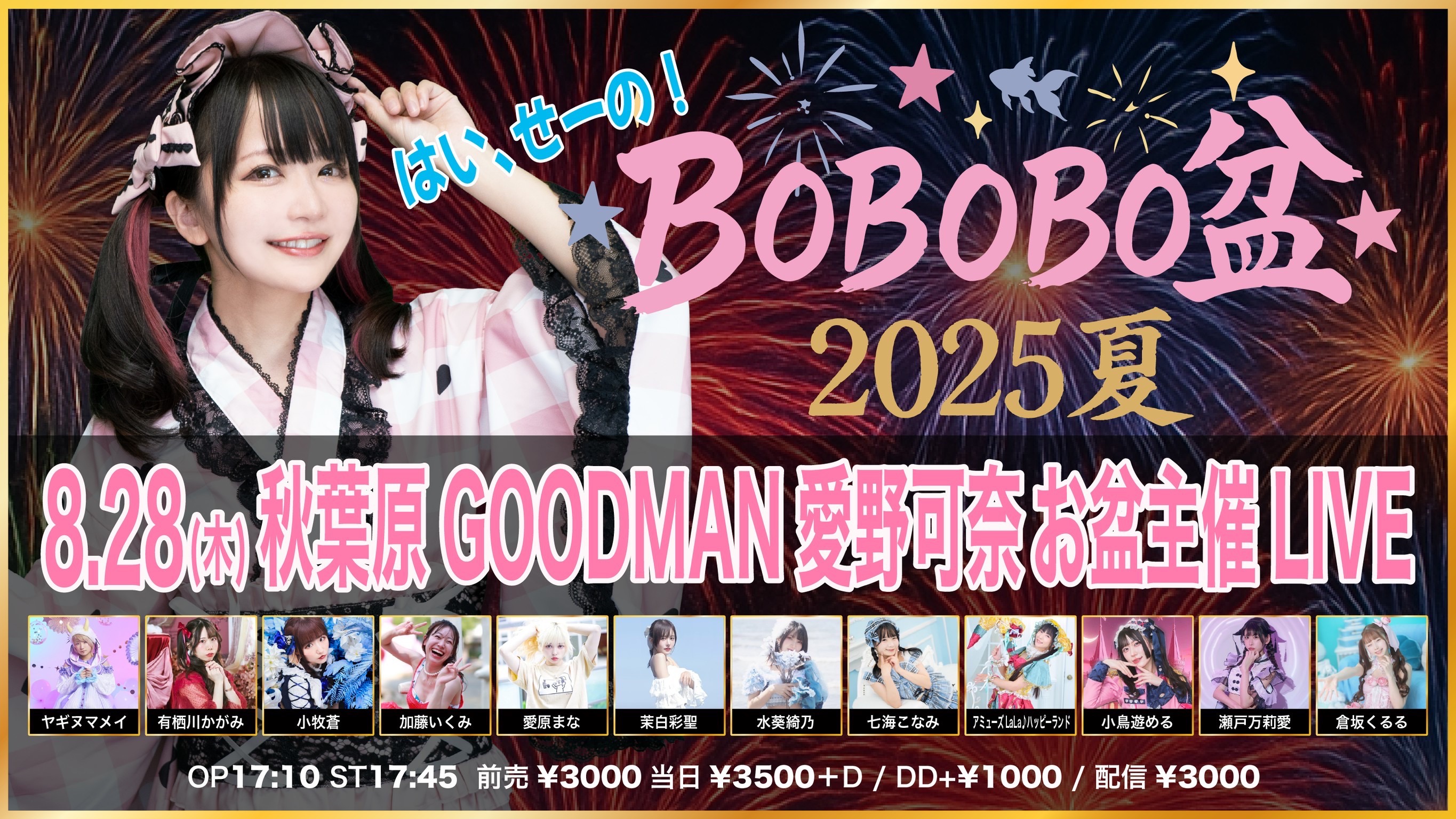 予約¥3,000 当日¥3,500 ドリンク代別¥600 配信¥3,000
