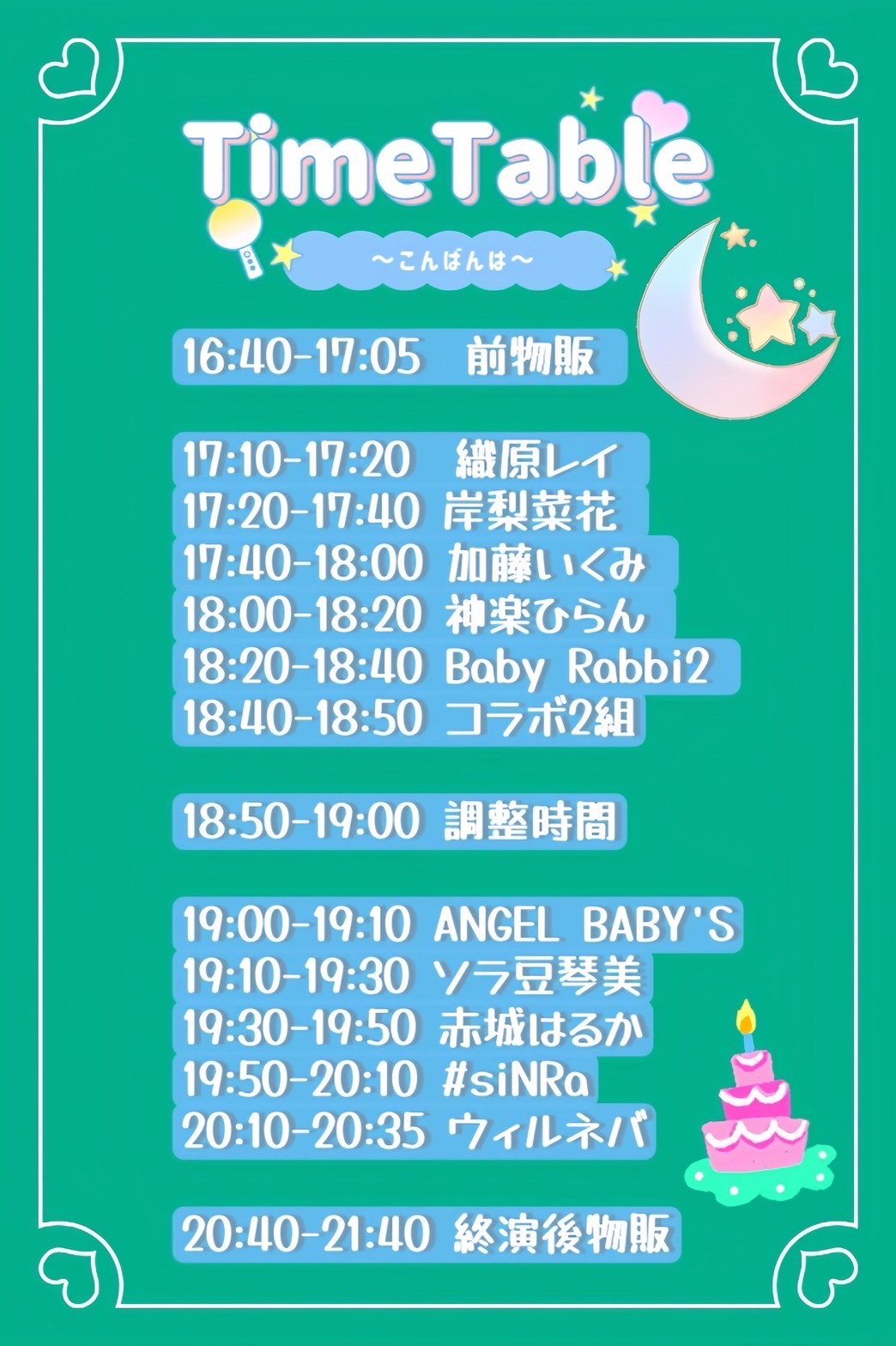 Will Never Stop / 神楽ひらん / 織原レイ / 加藤いくみ / ANGEL BABY'S / #siNRa / 江口いちご / 岸梨菜花 / ソラ豆琴美 / 赤城はるか