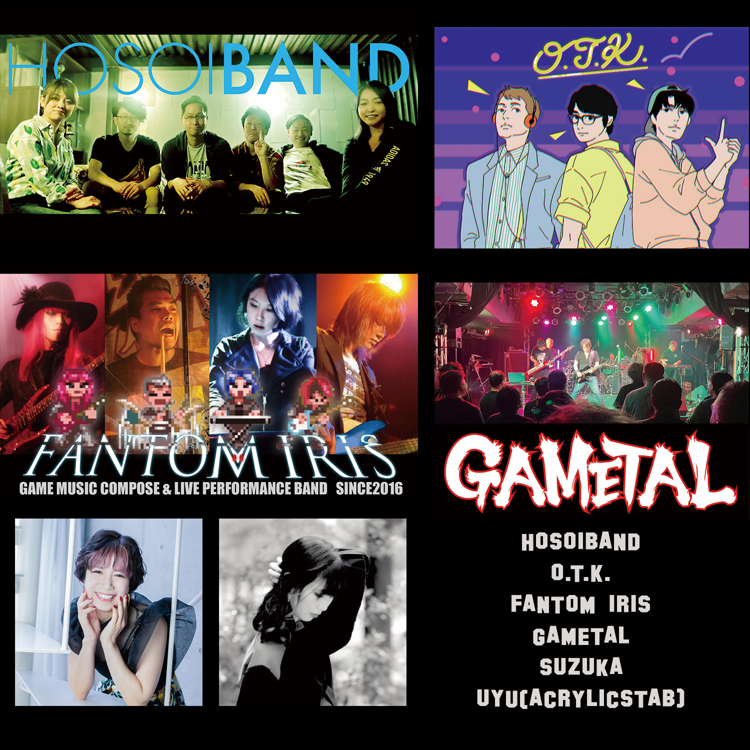 「ソニックウイングス」シリーズの細井そうし率いるHOSOIBAND(+ゲストドラマー川瀬) 、「雷電IV×MIKADO remix」「雷電III×MIKADO MANIAX」のアレンジも手掛けるゲームミュージックバンドO.T.K.、Fantom Irisに加え、ゲーセンミカド店長にしてギタリスト・イケダミノロック率いるGAMETALが初参戦!