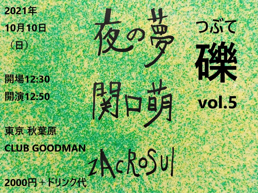 毎回、オリジナリティーのある組み合わせで独自の世界観を展開しているイベント"礫 -つぶて-"のvo5!