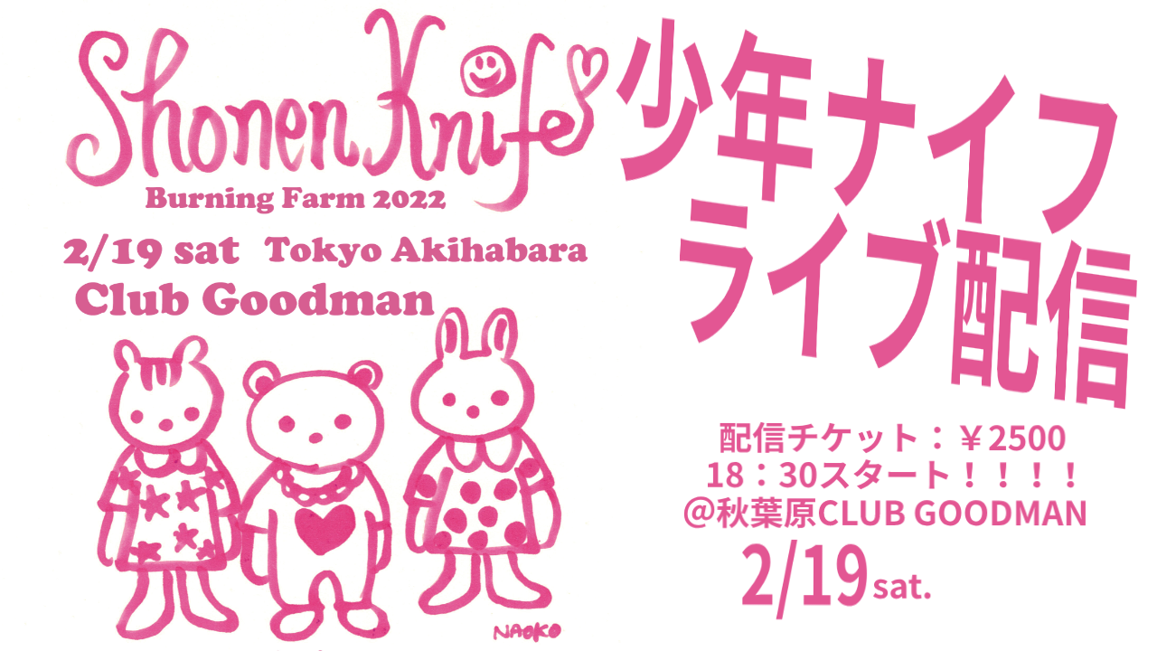 配信スタート:18:30(配信は少年ナイフのみとなります。)
