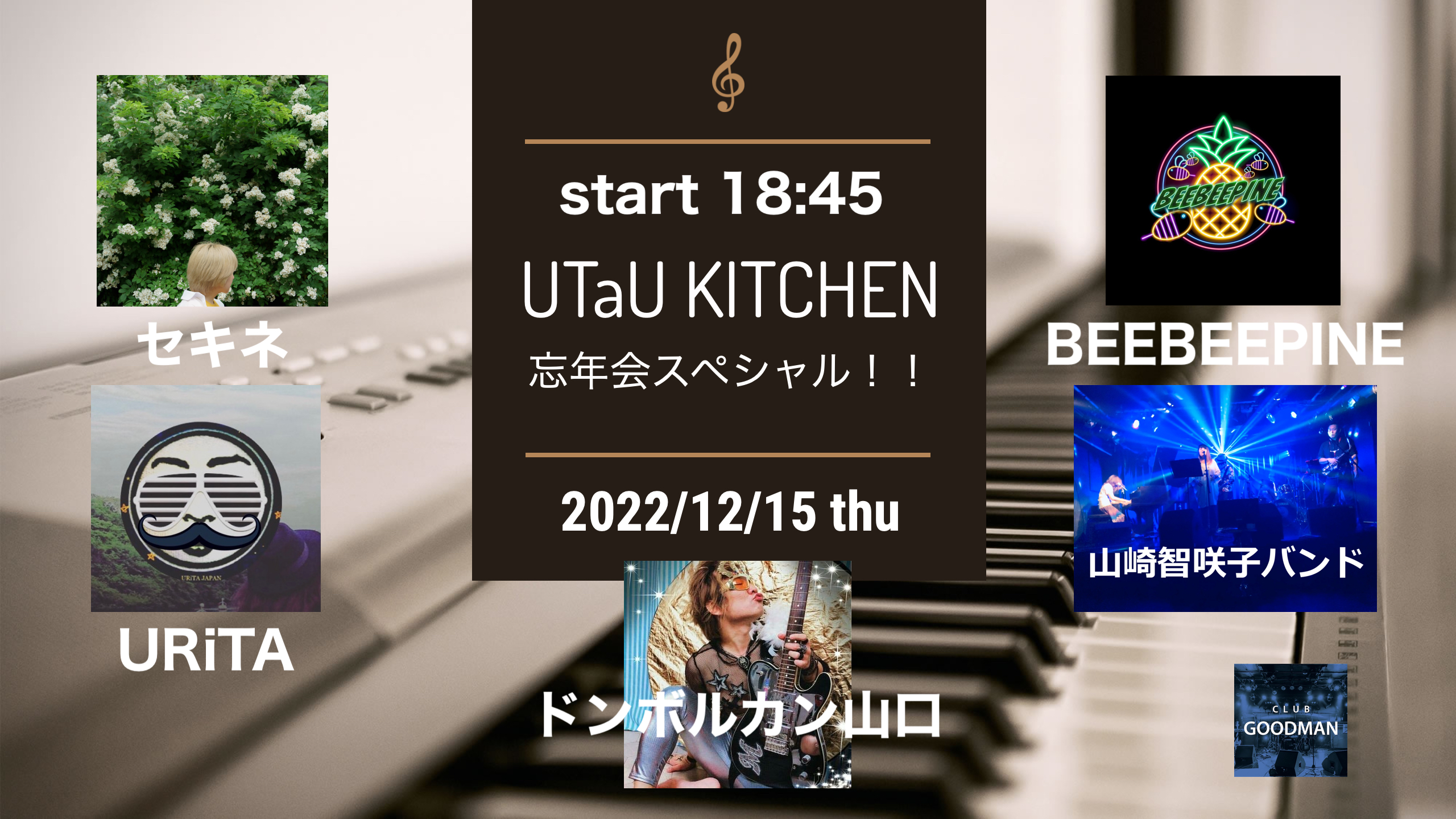 出演者 山崎智咲子BAND ドンボルカン山口 BEEBEEPINE セキネ URiTA OPEN 18:15 / START 18:45 前売¥2,500 当日¥3,000 ドリンク代別¥600