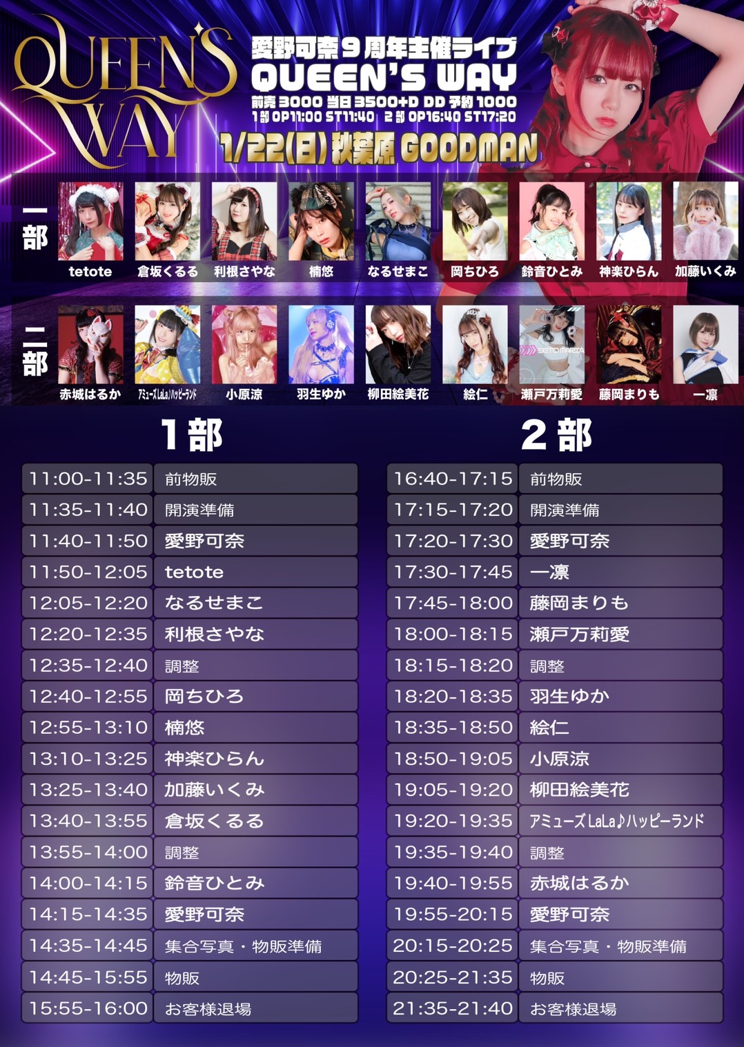 出演者 愛野可奈 岡ちひろ 楠悠 なるせまこ 利根さやな 倉坂くるる 神楽ひらん 鈴音ひとみ OPEN 11:00 / START 11:40 前売¥3,000 当日¥3,500+Drink¥600 DD予約¥1,000 配信¥2,500