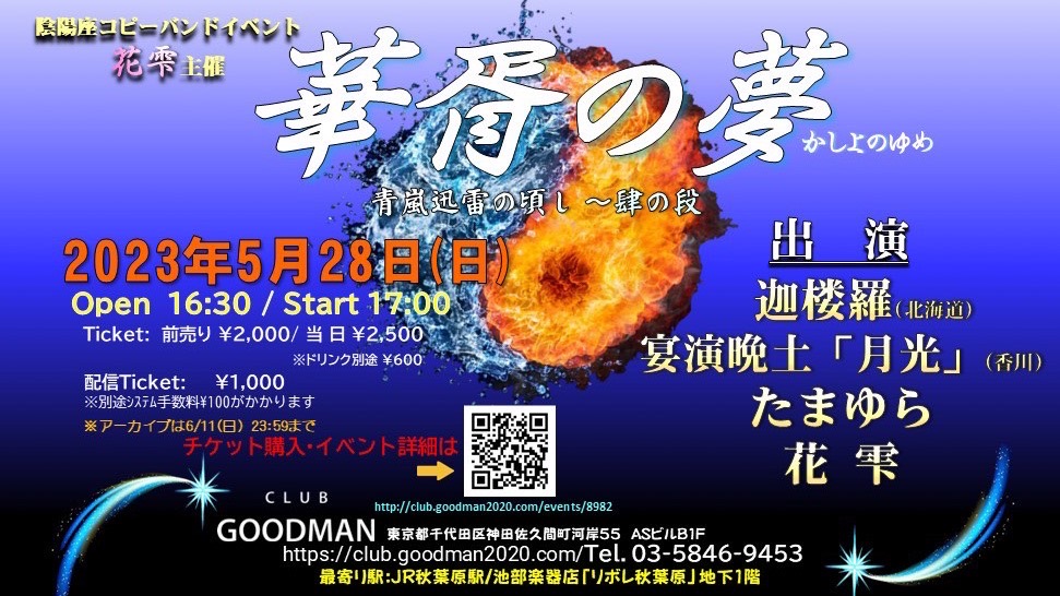 前売¥2,000 当日¥2,500 ドリンク代別¥600 配信チケット¥1,000