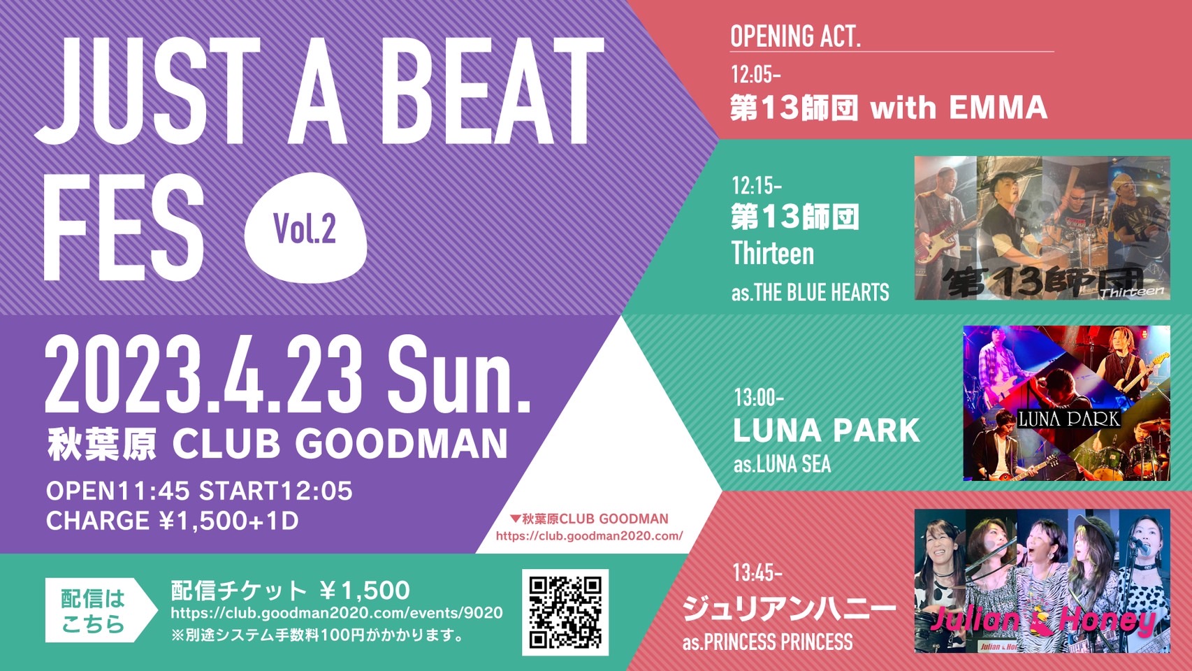 入場¥1,500 +ドリンク代¥600 配信チケット¥1,500