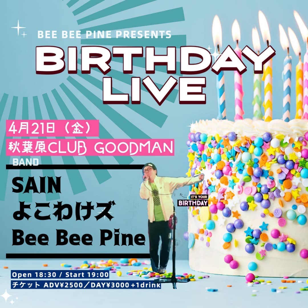 Bee Bee Pineが送る! ボーカル齋藤司のバースデーライブ! よこわけズ 、SAINとの3マンライブが実現しました! ぜひ遊びに来てください。